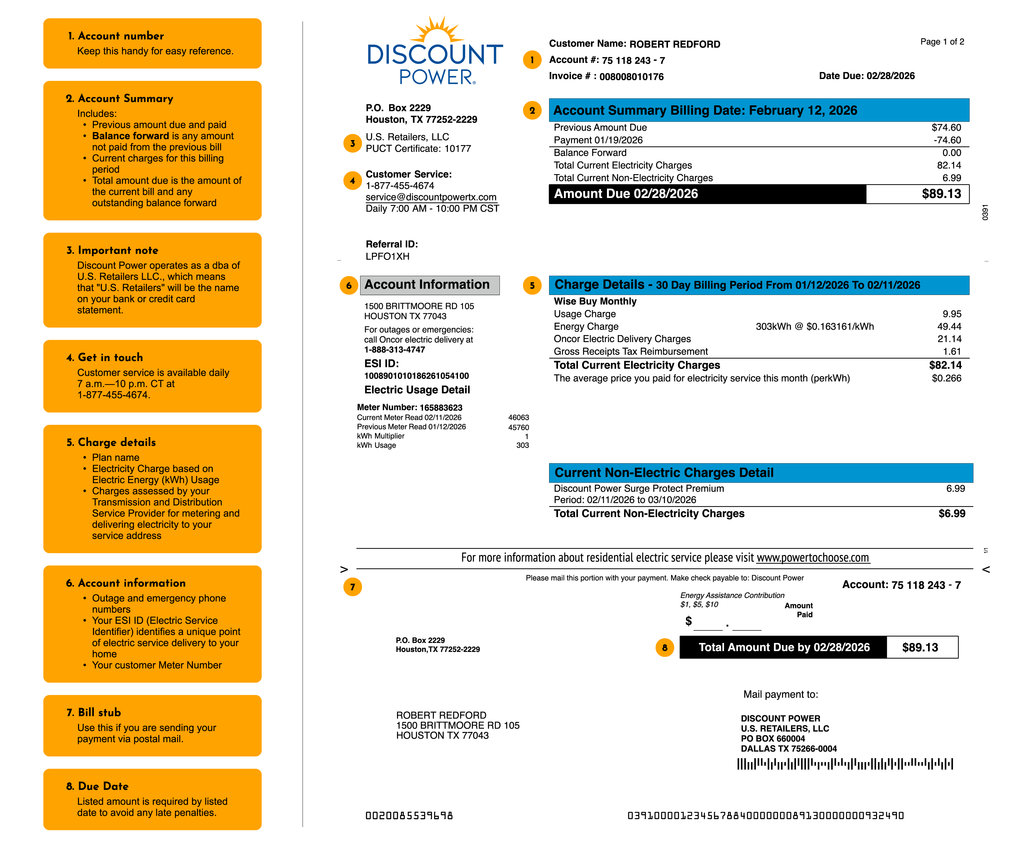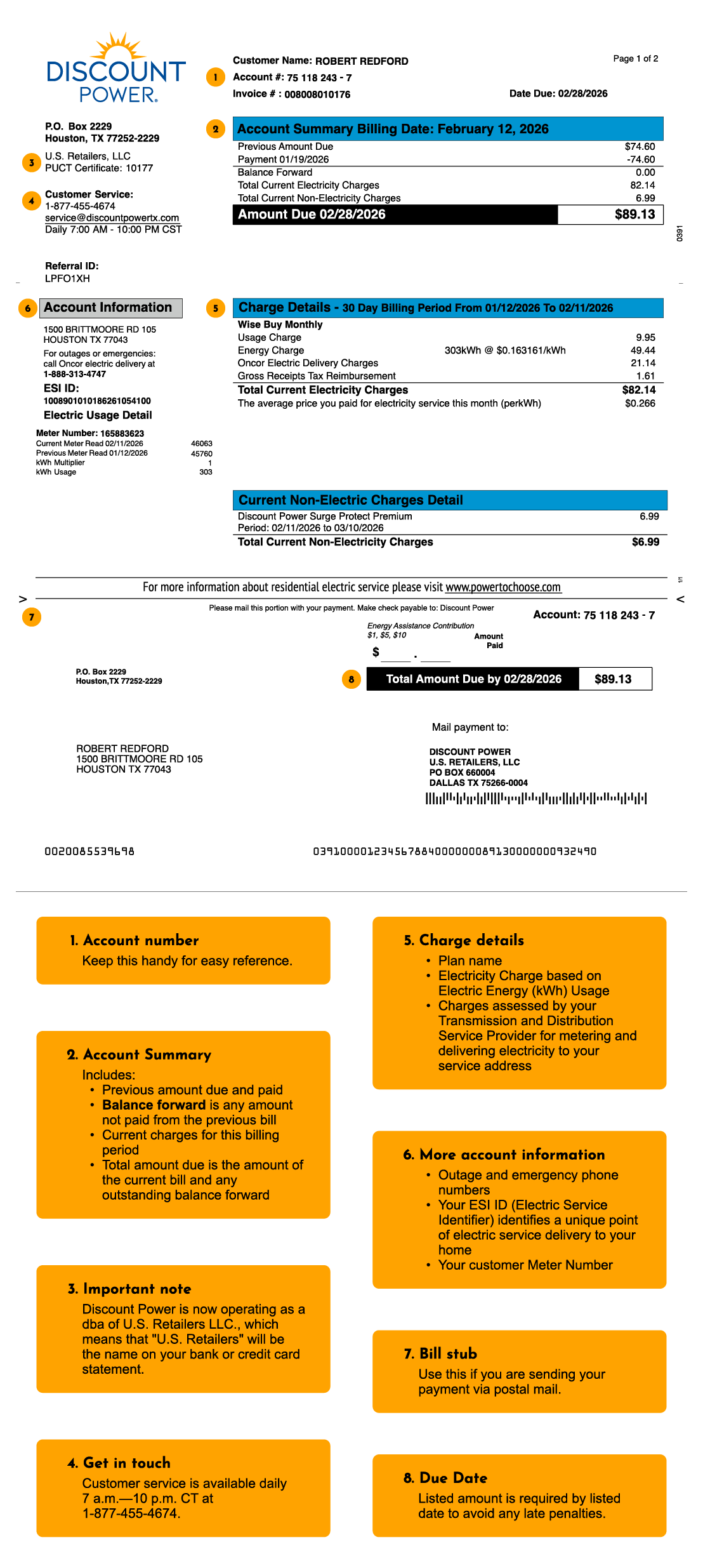 - Review the sample bill to become familiar with how the bill looks so that you can better understand the charges.